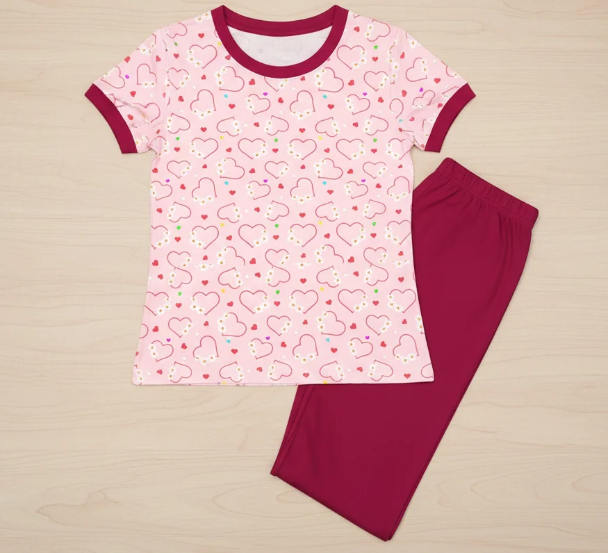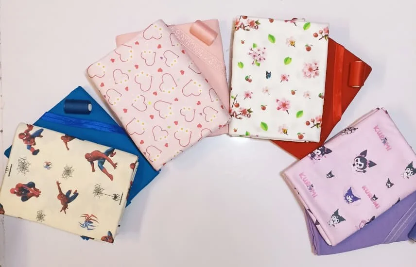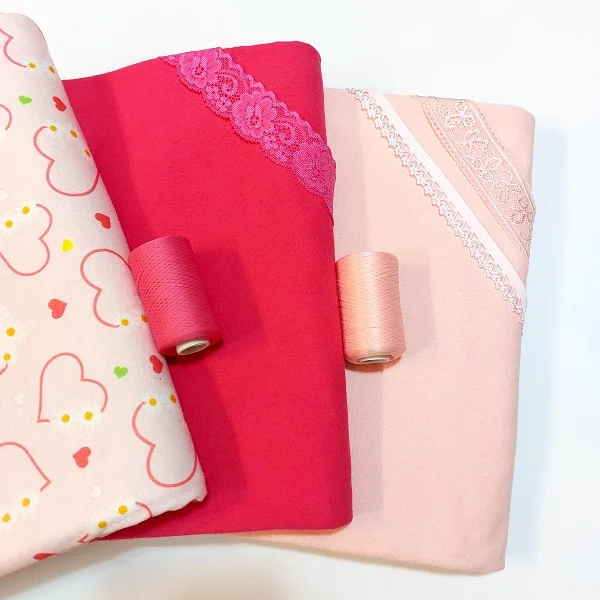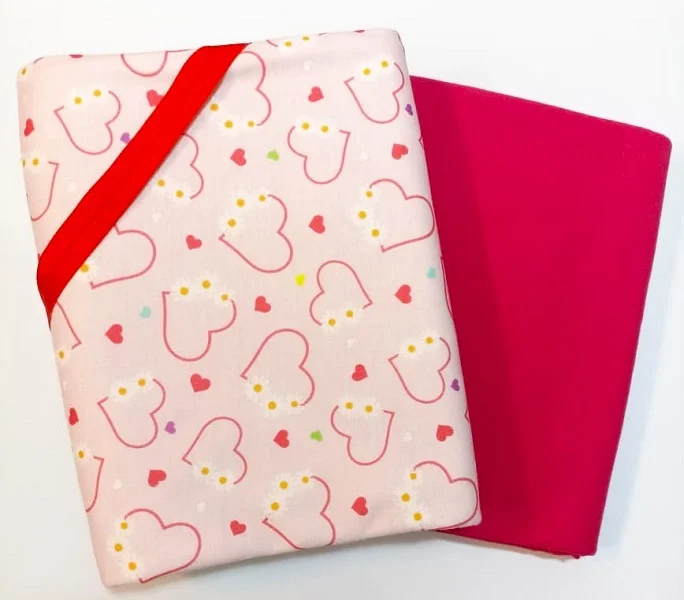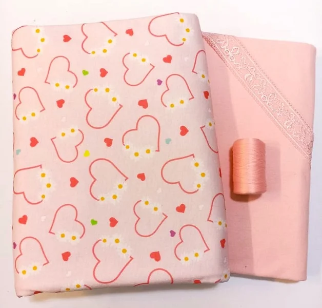 طرح قلبی سرخابی با ترکیب پنبه و اسپان به همراه ست پارچه یکرو پنبه سوپر سرخابی