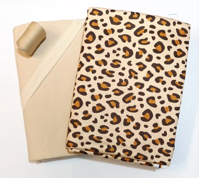طرح پلنگی به همراه ست پارچه یکرو پنبه سوپر کرم رنگ برای ست کردن