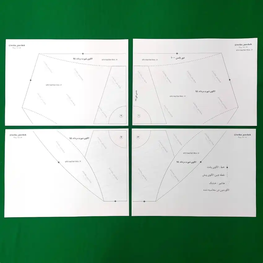 خرید الگو خیاطی شورت مردانه به صورت فایل PDF و قابل چاپ روی کاغذ A4